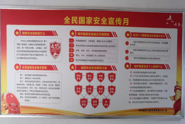 2025年4月15日是全国第10个全民国家安全教育日,国家安全人人有责,为深入贯彻习近平总书记关于加强国家安全教育的重要指示和批示精神,推动国家安全宣传教育工作走深走实,持续增强公司全员国家安全意识,4月1日,郑州建投工程咨询有限公司党支部组织全体党员、积极分子在公司会议室开展“4.15”全民国家安全教育主题党日系列活动,推进大安全理念深入人心,共同筑牢国家安全防线。
