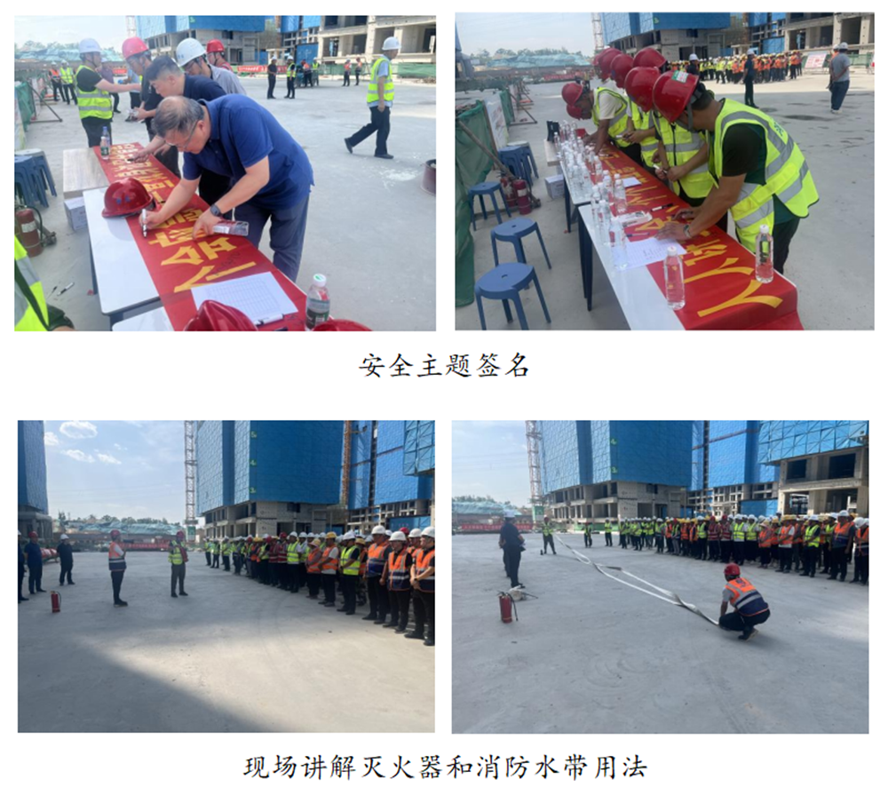 活动期间,大家积极参与安全主题签名和主题宣誓,讲解员现场讲解消防水带和灭火器的用法,解答安全生产相关知识,并开展了消防实战演练。开云球赛_开云球赛中国有限公司 分管安全生产的总经理助理黄志澎作重要讲话,强调了安全生产的重要性,要求各单位扎实做好今年防汛工作,并为一线工人发放防暑降温药品和安全知识手册200套。