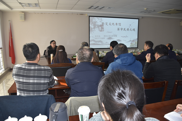 吴教授以《坚定文化自信,筑牢民族之魂》为题,围绕文化自信的含义、牢牢掌握意识形态工作领导权、培育和践行社会主义核心价值观、繁荣发展社会主义文艺等四个方面进行了专题辅导。他认为文化自信是一个民族、一个国家以及一个政党对自身文化价值的充分肯定和积极践行,并对其文化的生命力持有的坚定信心。他归纳出让中国人“自信”的“文化”,至少包括三个层面:中华优秀传统文化、革命文化、社会主义先进文化。当前我们面临的挑战和困难前所未有,境内外敌对势力插手意识形态斗争的情况越来越复杂,形势越来越严峻,多种势力联手,通过网络、新媒体等各种手段,妄图摧毁中国人的自信和共产党的执政根基。我们要按照习总书记的要求,坚持党管意识形态原则不动摇,进一步坚定共产主义理想信念,从我做起,从现在做起,在意识形态斗争中做到对党忠诚、个人干净、敢于担当,对一些意识形态的挑战要敢于亮剑。