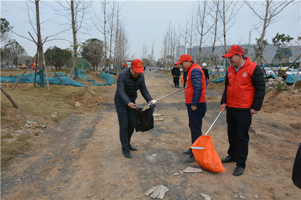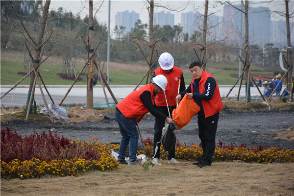 上午十时三十分,志愿服务活动开始后,开云球赛_开云球赛中国有限公司 党委委员、副总经理、项目部总经理汪洋亲自带头参加活动,其他党员干部带头干,职工群众积极干,参建单位负责人志愿加入干,大家拿起工具、弯下腰去,捡起草地上的生活垃圾,集中放进现场放置的垃圾桶内;没有拿到工具的同志们也拿起简易垃圾袋,将捡到的生活垃圾放进垃圾袋盛满后再放进垃圾桶内。一时间,党徽熠熠、爱心闪闪、干劲满满,不到一个小时时间,约20人的志愿服务队伍完成了近20000平米区域的垃圾清理任务,景观施工现场面貌大为改观。